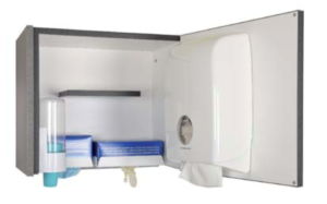 Le meuble hygiène FERLAIN distribue les gants, masques, gobelets et serviettes. Positionné au mur, il libère de l’espace sur votre plan de travail ainsi que dans vos tiroirs.